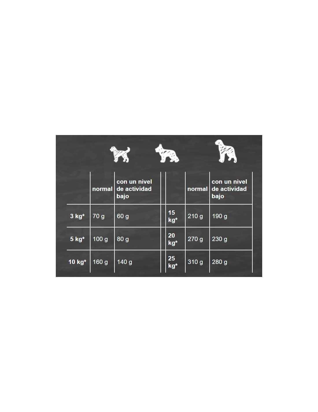 proteínas 19,5 %; contenido de grasa 9,0 %; cenizas brutas 6,5 %; fibras brutas 5,0 %; humedad 10,0 %; calcio 0,9 %; fósforo 0,65 %; sodio 0,2 %